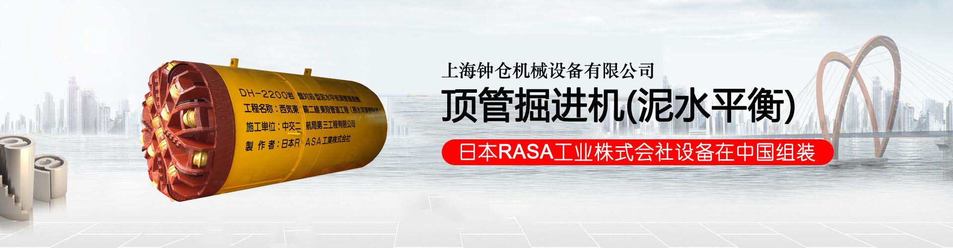 上海鐘倉(cāng)機(jī)械設(shè)備有限公司成立于1999年,是一家專業(yè)銷售日本工程機(jī)械的技術(shù)型公司,中國(guó)非開(kāi)挖技術(shù)協(xié)會(huì)的注冊(cè)會(huì)員。本公司是日本RASA工業(yè)株式會(huì)社﹑ 株式會(huì)社日本前田制作所﹑株式會(huì)社日本三井三池制作所的中國(guó)總代理。主要經(jīng)營(yíng)日本RASA進(jìn)口頂管掘進(jìn)機(jī)、日本前田制作所的蜘蛛吊、小型履帶起重機(jī),起重量從1噸-8噸。另外提供頂管掘進(jìn)機(jī)和配套設(shè)備的生產(chǎn)、租賃﹑維修等服務(wù)。