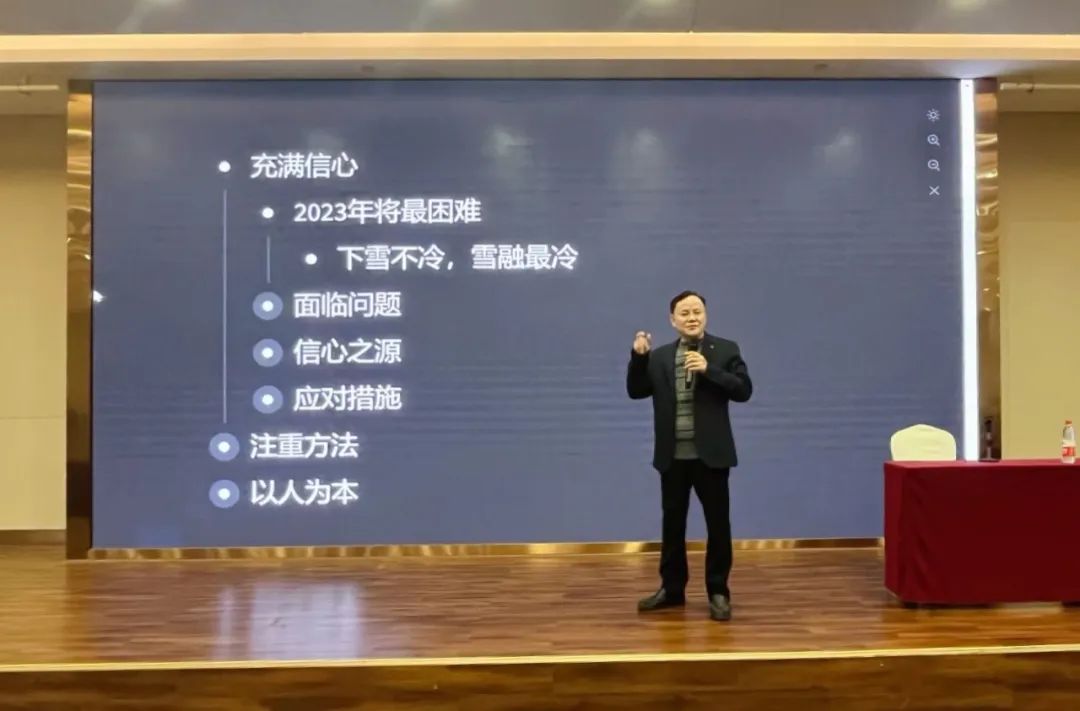 最后,公司董事長鄧德輝深入分析2023年面臨的挑戰(zhàn)和機遇,指出了工作發(fā)展方向及應(yīng)對挑戰(zhàn)的方法、措施。