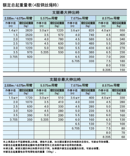 起重能力:2.82t x 1.4m 最大作業(yè)半徑:8.205m x 0.15t 最大起升高度:8.7m